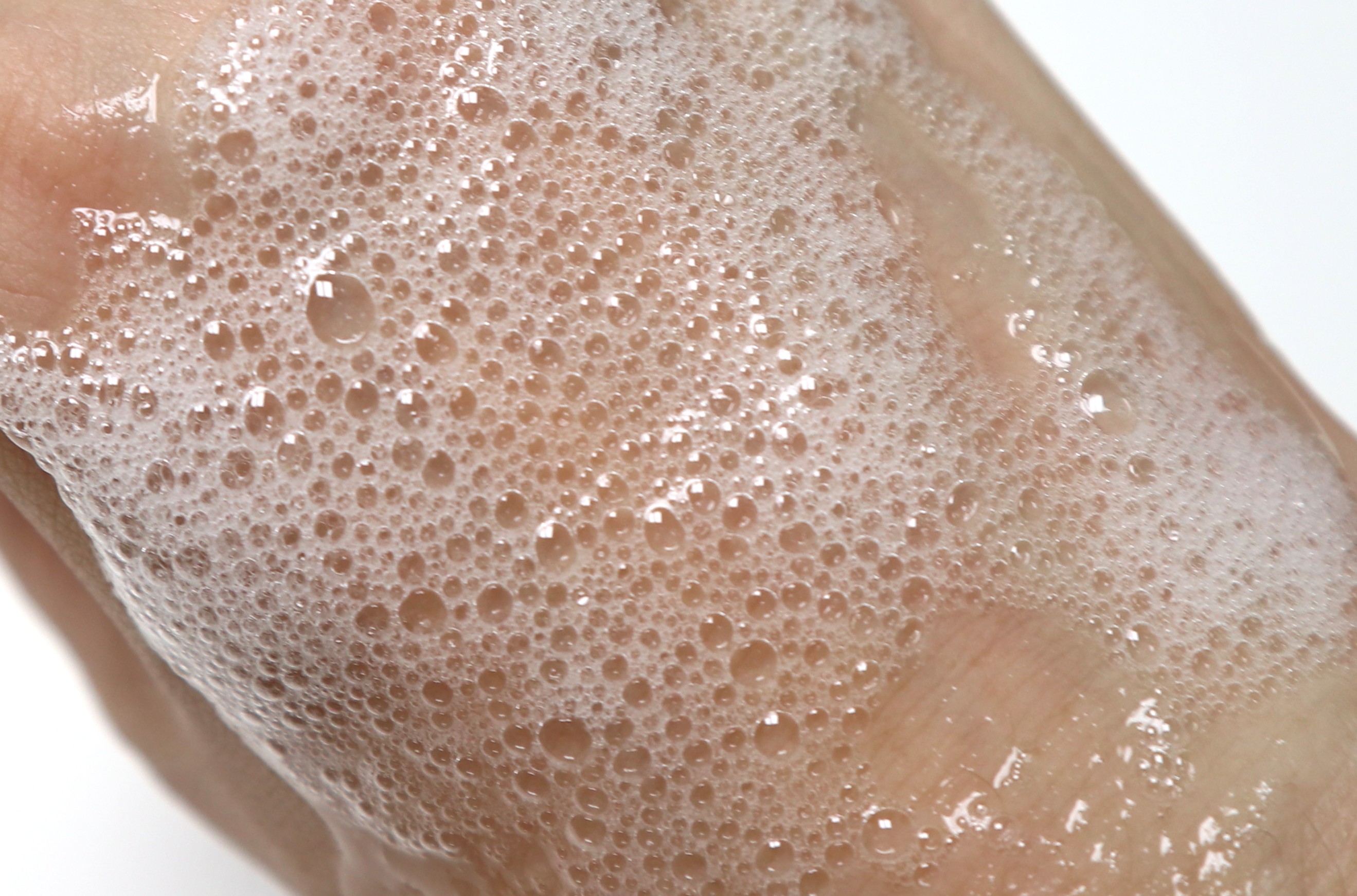 거품을 얼굴에 올리고, 피지나 각질이 고민인 부위(코, 이마, 턱)를 중심으로 정말 부드럽게 원을 그리며 마사지합니다. 30초를 넘기지 않도록 주의하세요.